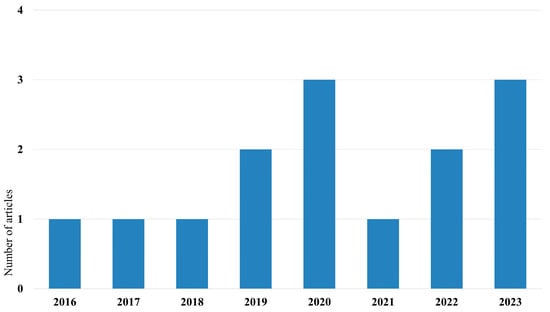The annual frequency of the 14 reviewed papers is illustrated in Figure 11. The number of papers increased in 2020, likely due to the disruptions and economic effects of COVID-19. The continued increase in subsequent years indicates a growing interest in this research field.