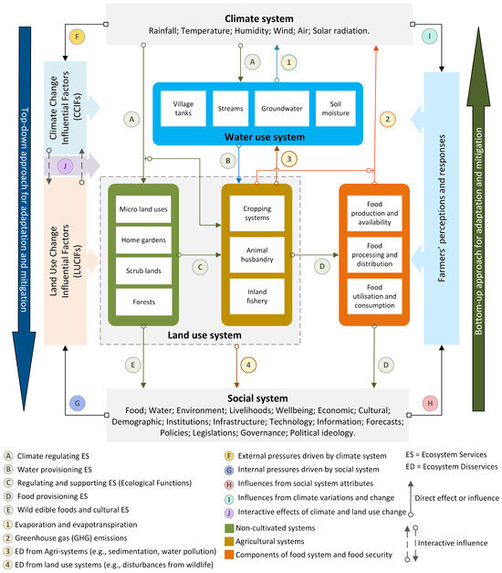 Global food systems are under increasing pressure from climate and land use change impacts [1,2]. Social-Ecological Systems (SESs) are critically dependent on traditional food systems for food production and have experienced various climatic and non-climatic pressures over time [3]. These external and internal pressures have impaired the capacity of ecosystems to produce ecosystem services and have increased food production challenges in SESs [4,5,6,7]. In Sri Lanka, the Village Tank Cascade System (VTCS) is a social-ecological system maintained by traditional smallholder agricultural systems, which have been recognized as a globally important agricultural heritage system [8]. The VTCS have withstood seasonal climate variability during the last 2000 years [9]. However, this rainwater harvesting-based agricultural system has faced challenges due to the changing climate and land use patterns, particularly over the last fifty years, making food production in this region vulnerable [10,11].