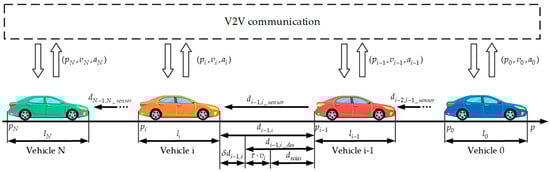 Schematic diagram of the longitudinal movement of the vehicle platoon.