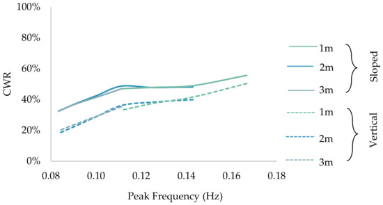 27], apart from the fact that Hs represents the average of the upper third of the wave heights. Therefore, the denominator of Equation (4) becomes 32π instead of 64π. Hence, the CWR for irregular waves might be even larger than the ones calculated to regular waves once the available power is less. In the case of this study, it averages 18% for irregular waves and 16% for regular waves.