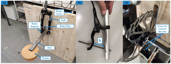 Figure 8a), where the bicycle fork would act as the WEC support, providing zero lateral movement, and the hydraulic disc brake would be the damping.