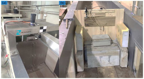 The channel where the tests were performed is a large wave–current flume that works in a closed circuit, located within the Hydraulics Laboratory of FEUP. The channel has a bottom with a slope of 0.5%, length of 32.3 m, and rectangular cross-section of 1 m wide and 1.33 m high. The test section has 7 glass windows, 2 m long and 1 m high, to allow an easy visualization of the flow and measurements. Downstream, a vertical flat gate, acting as a discharger, allows to regulate the height of the flow [