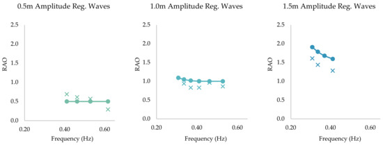 Furthermore, relative errors between numerical and experimental simulations were also calculated according to Equation (8). With the relative error averaging 21%, together with a good matching of the RAO, it was possible to conclude that the experimental model was a good representation of the numerical model simulated in ANSYS