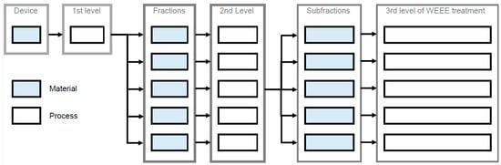 Nomenclature and three levels of WEEE treatment: Please note that, merely for the third fraction, subfractions are created in this exemplary flow.