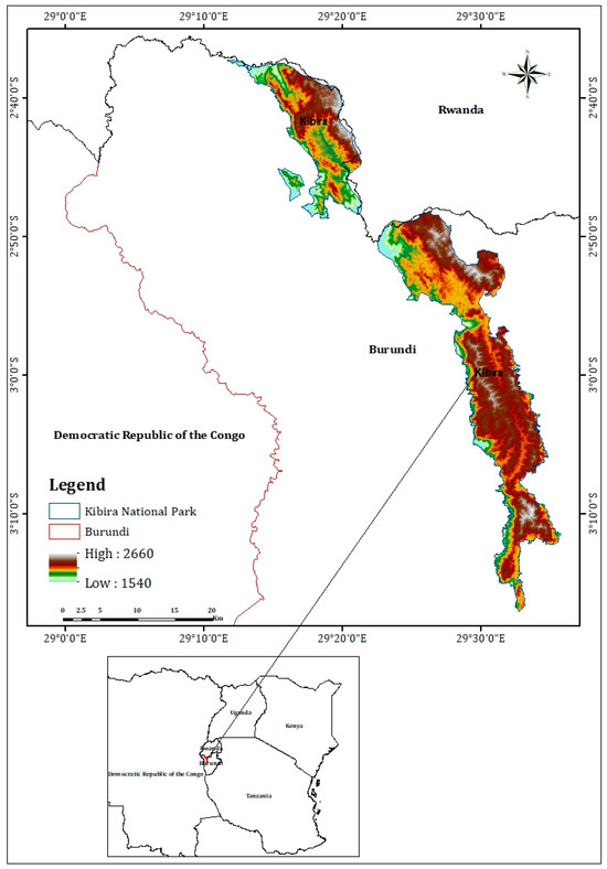 - Ndayizeye, G.; Imani, G.; Nkengurutse, J.; Irampagarikiye, R.; Ndihokubwayo, N.; Niyongabo, F.; Cuni-Sanchez, A. Ecosystem services from mountain forests: Local communities’ views in Kibira National Park, Burundi. Ecosyst. Serv. 2020, 45, 101171. [Google Scholar] [CrossRef]