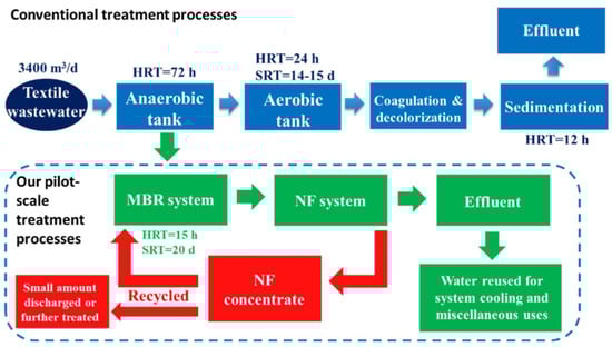 Process flow of conventional treatment and combination of MBR-NF process (reprinted from [] with the kind permission of Elsevier).