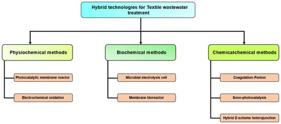 The primary approaches utilized in the treatment of wastewater may be categorized into three distinct groups: biological, chemical, and physical. Table 1 provides a concise overview of the methodologies and presents a comprehensive analysis of their respective merits and drawbacks. One example of physical techniques is the utilization of membrane technology. On the other hand, chemical methods encompass processes such as oxidation, coagulation, and photochemical oxidation. Additionally, biological approaches include the implementation of anaerobic/aerobic sequential processes []. Oxidation is a chemical process that encompasses several techniques, including bleaching, chlorination, and ozonation. These techniques include the utilization of specific chemicals such as hydrogen peroxide, permanganate, chlorine, chlorine dioxide, and ozone (O3), respectively [,,,].