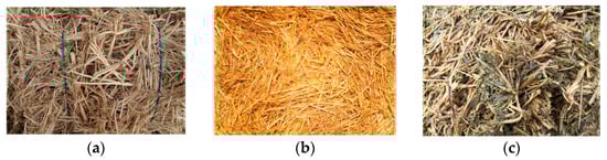 Tested biomaterials: (a) soybean straw; (b) wheat straw; (c) clover straw [23].