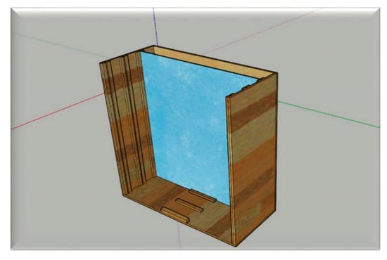 Wooden box (dimensions 750 × 750 × 300 mm) with a movable PVC partition made for forming biomaterial plates with a thickness of 100, 200, and 300 mm [10].