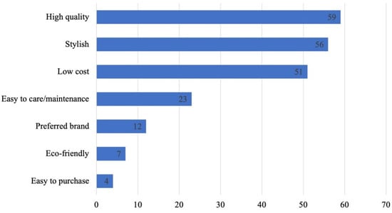 In addition to demographic information, respondents were asked to specify important attributes for purchasing T&A products. Figure 2 displays the respondents’ choices for the attributes they considered most important.