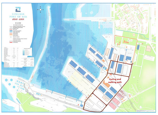 Conceptual solution of the cycling and walking path in the Port of Bar (created by the authors based on the figure from [44]).