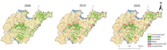 Dynamic changes of land use in Shandong Province from 2000 to 2020.