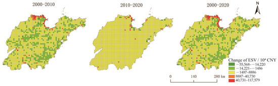 Amount of change of ESV in Shandong Province from 2000 to 2020.