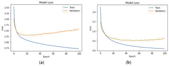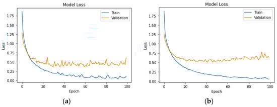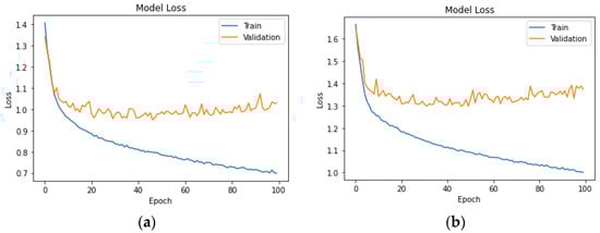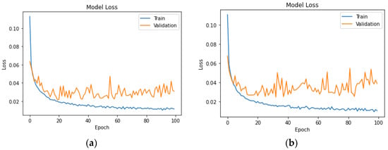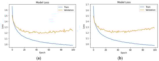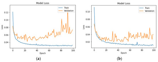 A descending trend in both training and validation loss is achieved in the neural network of UK car drivers for headway (a) and speeding (b) as demonstrated in Figure 8 below.