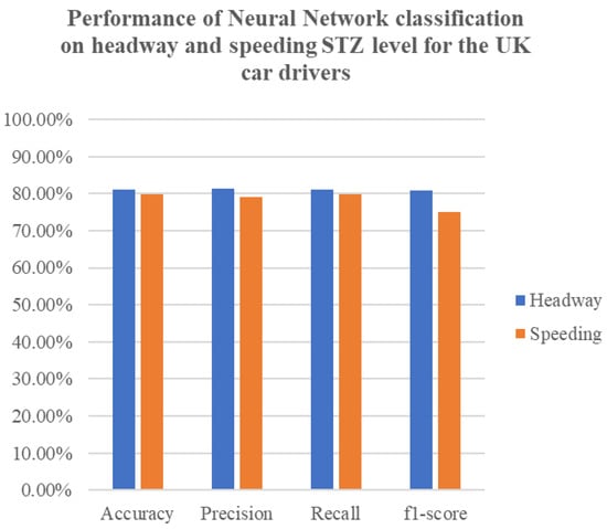 A performance of neural network classification on headway and speeding STZ level for the UK car drivers is presented in Figure 7.