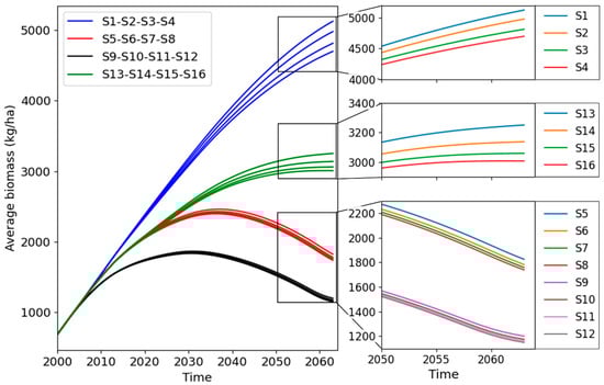 Average biomass of all scenarios from 2000 to 2063 (kg/ha).