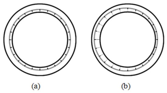 Due to the rotational movement depicted in Figure 5, magnetic and gravitational forces are present at the rotor. Therefore, the structure will experience deformation. Consequently, the air gap will be reduced. This phenomenon will be further magnified by the recognised shaft misalignment caused by aerodynamic loading. Additional forces in five degrees of freedom, as well as forces caused by thermal expansion and shear, can be identified. However, they were deemed negligible for the purpose of this study. The allowable resultant air gap deflection is stated to be 10–20% for direct-drive structures. This limit ensures that the air gap flux density will not increase to dangerous levels that can produce the collapse of the machine [8,9].