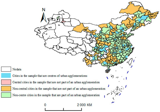 The main explanatory variables in this paper are the time dummy variable for the treatment period and the interaction term of the grouping variable for whether or not it is a pilot for NU. Specifically, with reference to the general practice of existing pilot analyses [97,98] the of city i in year t and subsequent years takes the value of 1 if city i is selected in the list of Wen’s new urbanization pilots in year t, and 0 otherwise.