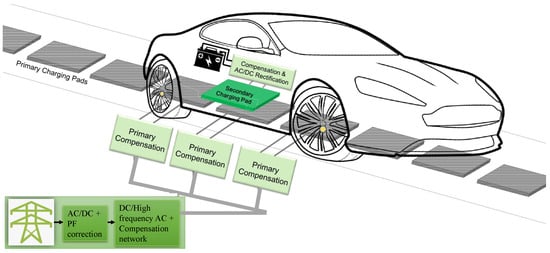 Outline of a dynamic wireless charging system with a roadway-powered electric vehicle. Reproduced with permission from Ref. [19]. 2022, IEEE.