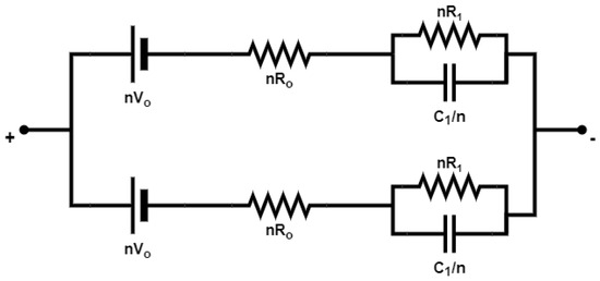 Schematic of the EV battery module consisting of two parallel-connected modules, each with n = 96 cells.