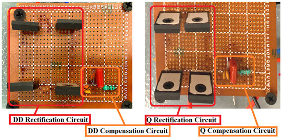 The hardware implementation of the compensation and rectification circuits for the secondary-side DD and Q coils. Reproduced with permission from Ref. [19]. 2022, IEEE.