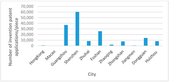 Number of invention patent applications in cities in the Guangdong–Hong Kong–Macao Greater Bay Area in 2017.