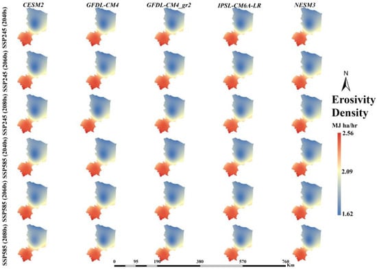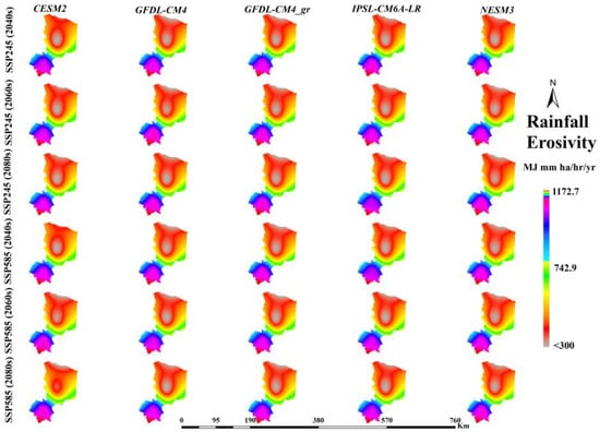 Rainfall erosivity projections for the period 2040s, 2060s, and 2080s according to SSP245 and SSP585 scenarios driven by the CESM2, GFDL-CM4, GFDL-CM4_gr, IPSL_CM6A_LR, NESM3 GCM models.