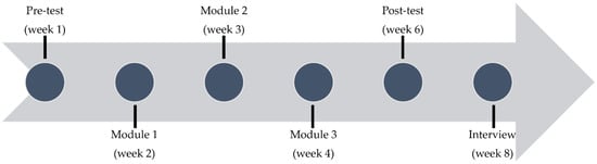 - Post-tests and focus group interviews: Students were asked to complete the same online questionnaire they responded to before, and the answers were used to evaluate the effect of the participation in the activities on the knowledge of students. Focus group interviews were applied to a group of five students from each class to clarify and support the findings from the questionnaires, enabling a methodological triangulation approach. The post-tests took place two weeks after the last module, and the interviews 15 days after (Figure 1).