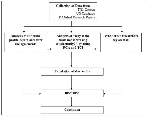 The utilization of secondary data from reputable sources such as the World Trade Organization (WTO) and the United Nations Conference on Trade and Development (UNCTAD) adds rigor and credibility to the research. This aspect connects the methodology to prior research in the field of international trade, as it leverages established data sources and aligns with previous studies that have examined trade agreements’ effects on bilateral trade relationships. Additionally, the consideration of tariff rates, non-tariff barriers, and economic indicators in data collection aligns with trade theories like the New Trade Theory, which emphasizes economies of scale and product differentiation. This comprehensive data approach ensures that the analysis encompasses multiple facets of trade agreements’ impact on India and Sri Lanka’s trade dynamics. Furthermore, our methodology’s calculation of the revealed comparative advantage (RCA) index and the trade complementarity index (TCI) directly connects to international trade theories. The use of the RCA index, for instance, reflects the application of comparative advantage theory, which suggests that countries should specialize in products where they have a relative advantage. By employing the TCI, the study delves into the notion of trade complementarity, reflecting the New Trade Theory’s emphasis on specialization and product differentiation. These indices serve as empirical tools to assess whether the trade agreements align with these fundamental trade theories and whether they lead to increased trade specialization and complementarity between India and Sri Lanka. In terms of previous research and trade theories, the methodology also contributes by evaluating the SAFTA and ISFTA agreements in light of their objectives, provisions, and actual impacts on bilateral trade. This approach aligns with prior studies that have assessed the effectiveness of trade agreements [71,72,73]. The comparison of trade flows and performance before and after the implementation of these agreements reflects a broader trend in trade research, wherein researchers seek to understand the causal relationships and statistical significance of trade agreements regarding trade dynamics.
