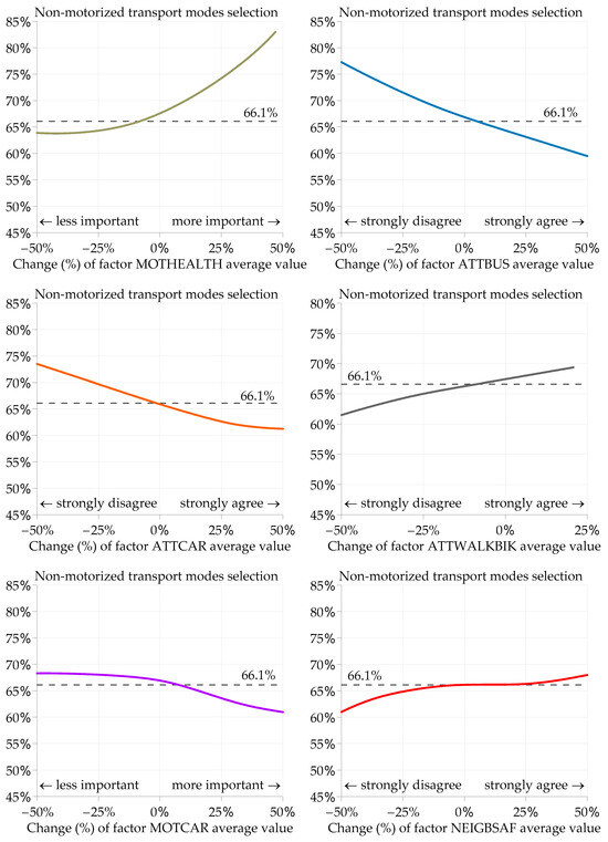 - Which of the five factors (MOTHEALTH, ATTBUS, ATTCAR, ATTWALKBIKE, and MOTCAR) related to parental perceptions and beliefs, which can only indirectly (along term) be influenced by the state (through information and awareness-raising campaigns, incentives provision, etc.), has the greatest impact on encouraging non-motorized school travel?