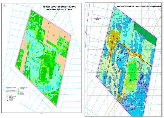 U Minh Thuong National Park is a nature reserve located in the southwest of Vietnam, covering an area of approximately 80,000 hectares [1]. It is an area of significant ecological value, featuring both mangrove and wetland forests, and is home to many rare and endangered species of plants and animals [2,3]. The park has a high level of biodiversity, with over 500 species of plants and 254 species of animals, including many rare species such as green snakes, crocodiles, large reptiles, yellow parrots, and many migratory birds [4,5,6]. Due to its ecological significance, U Minh Thuong National Park was recognized by UNESCO as a World Natural Heritage Site in 2002 [7]. However, the park faces several significant conservation and development challenges that threaten its ecological health and biodiversity. Illegal logging is a severe problem, and unsustainable fishing and aquaculture practices are also causing environmental degradation. Climate change is another issue that poses a significant threat to the park’s ecosystems, with rising temperatures and sea levels potentially disrupting habitats and increasing the risk of wildfires [8]. Addressing these challenges will require the cooperation of Vietnamese scientists and government agencies, as well as the participation of local communities and stakeholders. Conservation efforts must focus on promoting sustainable development practices, including responsible logging and fishing, and finding ways to mitigate the impact of climate change. It is also essential to raise awareness about the park’s ecological significance and educate people on preserving biodiversity [9]. By working together to address these challenges, we can ensure that U Minh Thuong National Park remains a vital ecological area for future generations.