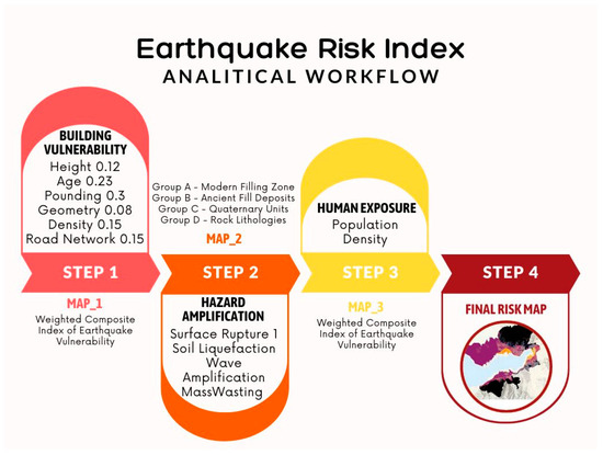 Drawing inspiration from comprehensive works, such as “A GIS-based earthquake damage assessment and settlement methodology” by Hashemi and Alesheikh (2011) and “Integration of earthquake risk-sensitivity into land use planning: An approach for a local level area at development phase” by Barua et al. (2020), composite indicators incorporate seismicity rates, fault activity, ground shaking potential, and vulnerability of structures into a unified spatially georeferenced framework [29,30]. These indicators contribute significantly to the advancement of seismic risk science and enable decision-makers to prioritize mitigation strategies and allocate resources efficiently for resilient urban planning and infrastructure development.
