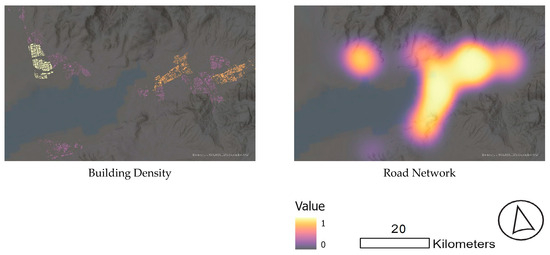 Building height has a substantial impact on earthquake response and the level of structural damage [56,57]. Buildings having a lower height-to-surface area ratio are more earthquake-resistant and vice versa [58,59]. As a result, high-rise buildings with a smaller surface area are more vulnerable to earthquake damage. Similar to many earthquakes that took place in Türkiye, similar damages were observed in buildings of different heights and ages in earthquakes in and around Izmir (Figure 3). When these buildings shake and swing during an earthquake, they have a higher probability of pounding [17]. For height estimation during the field surveys, three types of buildings were considered: single-story, double-story, and triple or multiple-storied. To this scope, the average height has been calculated at pixel level from the original product of the Global Human Settlement Layer. The raster has been rescaled from 0 to 1.