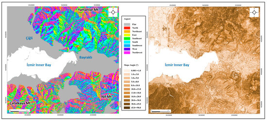 Situated on the western tip of Anatolia (at coordinates 38.42° N 27.14° E), Izmir encompasses the most concentrated urban area, Izmir itself, spanning across 12,012 square kilometers and hosting over 4,677,292 residents [39,40]. The highest population densities are found around the former Roman harbor, now transformed into one of the densely developed Ottoman bazaar districts known as Alsancak in the Konak district [41]. Due to favorable landform conditions, the entire waterfront area has become saturated with settlements and infrastructure. The waterfront basin is predominantly hilly, transitioning from steep inland slopes to gentle, flat, sandy coastlines [42]. In other regions, particularly along the riverbanks with fertile soils, there is intensive cultivation alongside significant industrial, commercial, and residential expansion, covering 40% of the total surface area. The average elevation is 239 m above sea level, with altitudes ranging from 1462 to 2 m. The most densely inhabited district along the waterfront continues to expand onto the hillside, encroaching upon semi-natural and natural forested areas (according to Corine Land Cover data, over 53% of the land is covered by typical Mediterranean densely vegetated terrain, with forests scattered along the hillslopes) [43].