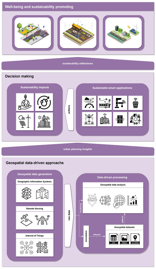 The insights gained from processing geospatial data through data-driven approaches not only enable more effective urban planning but also provide governments with valuable tools for strategic decision-making. As such, this information is critical to the design and implementation of sustainable smart applications, covering various areas related to improving the quality of life in smart cities. Examples of these applications include [3]: