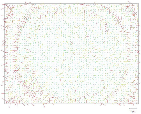 Figure 3 shows that the effect of calibration is the relatively balanced distribution of errors on the surface of the captured image, which avoids their massive concentration in the marginal area, as well as in the ordinary photos.
