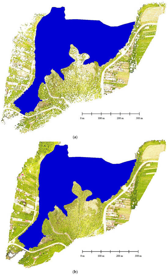 - Meneses, N.; Baier, S.; Reidelstürz, P.; Geist, J.; Schneider, T. Modelling heights of sparse aquatic reed (Phragmites australis) using Structure from Motion point clouds derived from Rotary- and Fixed-Wing Unmanned Aerial Vehicle (UAV) data. Limnologica 2018, 72, 10–21. [Google Scholar] [CrossRef]