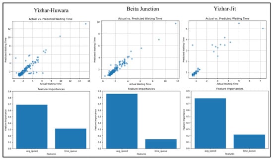 The problem of predicting waiting times has been widely studied in queueing theory, which considers customers’ waiting times before receiving service in contexts related to banks [] and health clinic services []. However, it has not been observed in route planning or in transportation studies. Various methods have been developed for predicting waiting times, including average waiting time, queueing theory, and machine learning (ML) models.