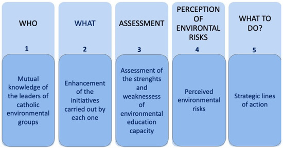 The third section, “Assessment”, carried out an assessment of the ability of the involved associations in disseminating and raising awareness of the culture of sustainability. During such processes, the various associations were asked to indicate the strengths and weaknesses of this action in the territory and the degree of environmental awareness in the Church’s training courses at various levels.