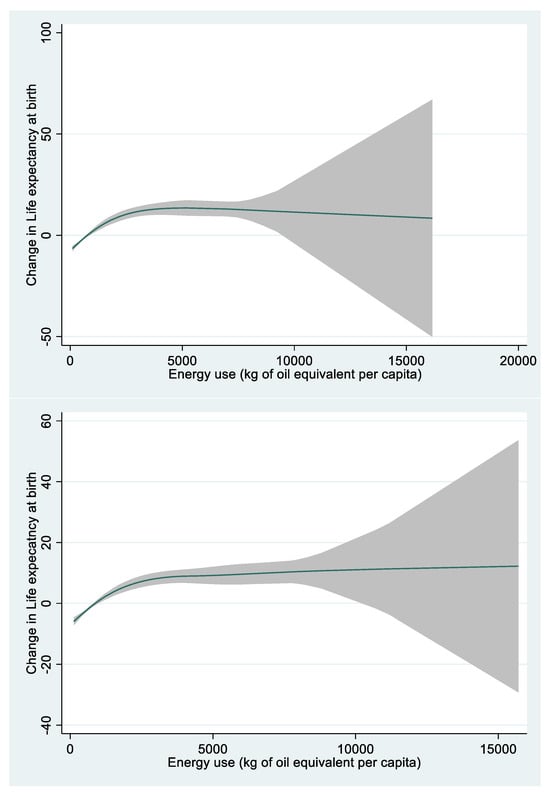As a further limitation, it has to be mentioned that our data is a very rough overall estimate, where several factors that might be of importance for life expectancy could not be considered (e.g., political situations, access to healthcare). We also could and did not differentiate between renewable and non-renewable energy. Technical development has made renewable energy much more available than it was in the 1970s, and several production areas nowadays pay attention to energy efficiency. Hence, an even more detailed investigation regarding the types of energy should be further encouraged.
