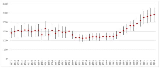 Figure 3) indicating that the average energy use became less and less important for population health.