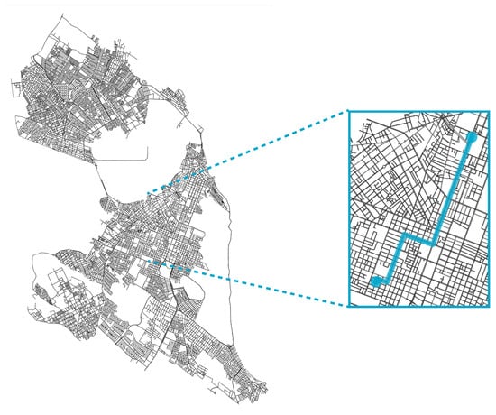 Therefore, it is worth highlighting that, for the route simulation, the result was a comprehensive graph that captured the complexity and specificity of the city’s road network, as illustrated in Figure 6.