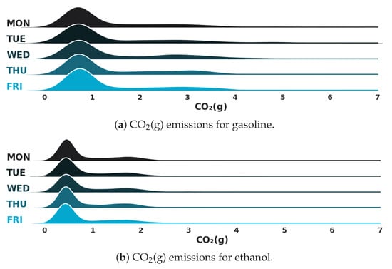 From the obtained estimation, a comparative evaluation of the CO emissions generated through the use of gasoline and ethanol could be performed. Initially, the evaluation was carried out by applying the TEDA (Typicality and Eccentricity Data Analysis) algorithm, which is used to detect outliers in data sets [34]. This algorithm is based on the notions of typicality and eccentricity in order to increase the relevance of the obtained results.