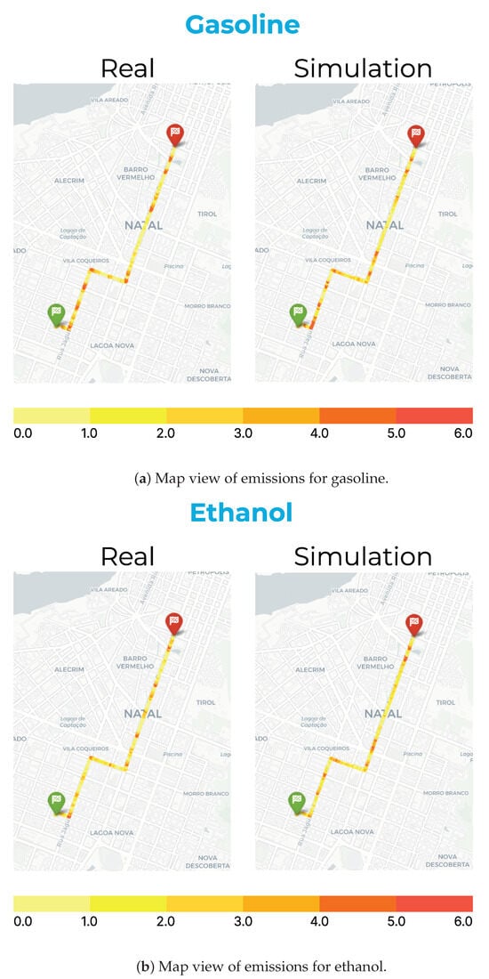 By integrating SUMO, we expand our ability to assess environmental impacts by facilitating the comparisons among different types of fuels. However, a practical challenge emerges due to the type of data that is modeled by the tool, which is different from the data retrieved via the OBD-II interface. In this case, a supervised machine learning model that was trained with real data collected from vehicles was designed, allowing inferences about missing data and meaningful comparisons between both approaches. Thus, the integration of SUMO into our methodology allowed for a comprehensive understanding of emissions patterns and specific areas for targeted interventions.