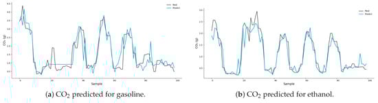 As an additional result, the inclusion of evaluation metrics such as the mean absolute error (MAE) and root mean squared error (RMSE) significantly enriched our analysis, offering quantitative insights into the accuracy of predictive models and enabling a direct comparison between the gasoline and ethanol scenarios. The attainment of low MAE and RMSE values indicates that, on average, our models yielded predictions in close proximity to the actual CO emission values, underscoring a high degree of accuracy in replicating emission variations. This numerical precision is particularly crucial when discerning between the two fuel types, with the ethanol scenario exhibiting notably lower errors compared to gasoline. These metrics not only enhance the robustness of our findings but also provide a concise and quantitative measure of the reliability of our predictive models, contributing valuable information for informed decision-making and policy formulation in the context of mitigating CO emissions. These metrics are important in understanding how predictions align with actual variations in CO emissions along a route. Additionally, It is crucial to address a specific limitation related to the MAF sensor, which served as a reference for CO emissions estimation in our approach. As highlighted, since our methodology relies on sensor data, we acknowledge the potential impact of sensor failures on estimation accuracy. Therefore, maintaining the proper functioning of sensors is paramount to ensure the reliability of our methodology.
