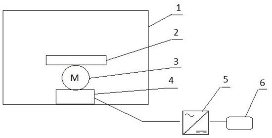 Diagram of the vibration simulation stand: 1—stationary vehicle body with adjustable temperature; 2—fruit container; 3—0.09 kW motor, 2800 rpm, 230/400 V, 0.58/0.33 A, IMB3; 4—suspension and vibration isolation (filled with sand); 5 –Omron MX2-AB 002-E inverter (SJ200-002NFEF2); 6—computer and software.
