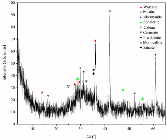 The X-ray diffraction analysis of the Pb–Zn slag is illustrated in Figure 5.