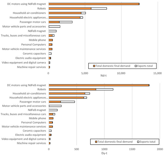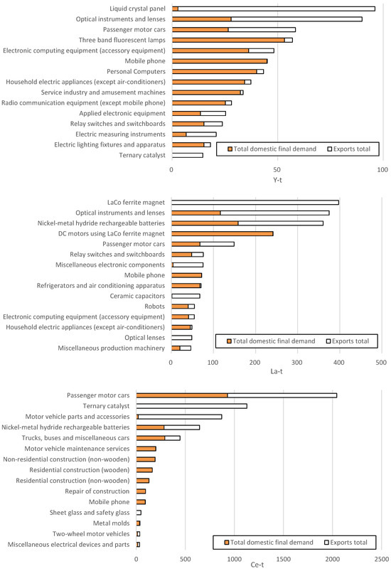 Major domestic final demands of each selected rare earth element in final and intermediate products.