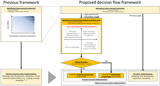 Decision flow framework of the mineral resources policy for a circular flow of critical minerals.