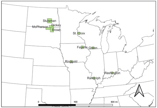 - Johnson, D.; Mueller, R.; Willis, P. The utility of the Cropland Data Layer for monitoring US grassland extent. In Proceedings of the 3rd Biennial Conference on the Conservation of America’s Grasslands, Fort Collins, CO, USA, 29 September–1 October 2015; National Wildlife Federation: Washington, DC, USA, 2015; pp. 15–19. [Google Scholar]